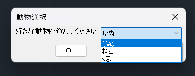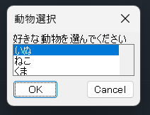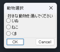 OKとキャンセルの標準ボタンセット。自動でダイアログ終了処理を行う。